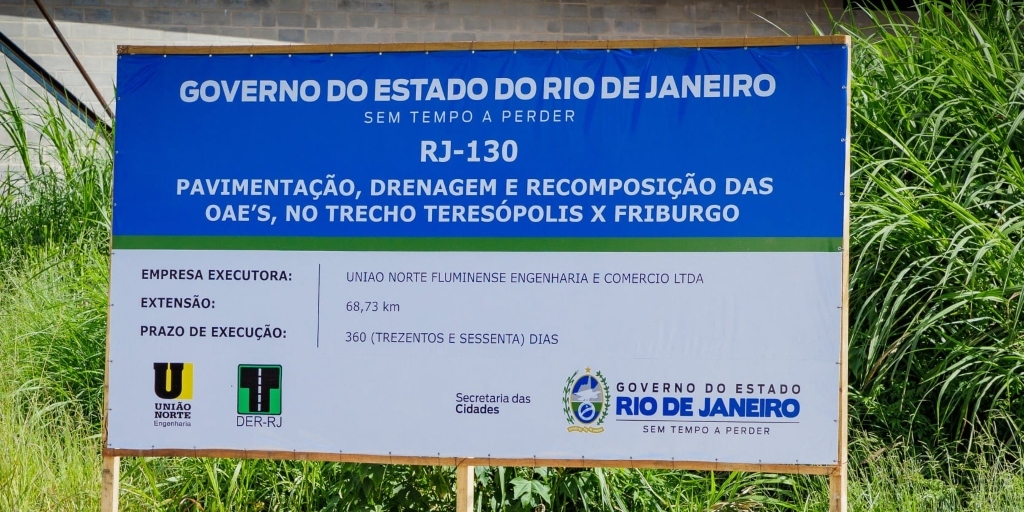 As obras dos mais de 68 km da rodovia RJ-130 têm prazo de conclusão de 360 dias e estão sob responsabilidade da empresa União Norte Fluminense Engenharia e Comercio LTDA.