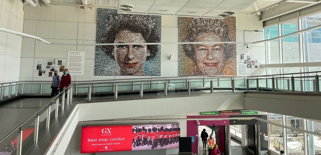 Imagem da rainha estava em todos os lugares do Reino Unido | Foto: Renata Estefan