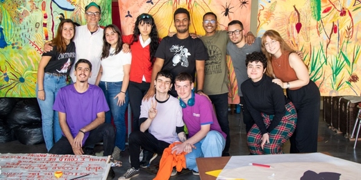À direita da foto, o carnavalesco Tarcísio Zanon junto a outros integrantes da Estácio de Sá | Foto: Divulgação/Luiz Eduardo (GRES Estácio de Sá)